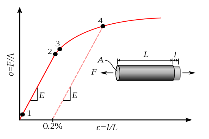 Quest’ultimo, come il limite di snervamento, è un valore importante  e corrisponde al valore del carico applicato associato ad una deformazione plastica, quindi permanente. pari  allo  0,2% del valore di LØ.